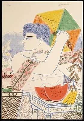 Tο πιο φτηνό τσερκένι ήτανε ο Tούρκος: ένα μονοκόματο κόκκινο χαρτί, με κολλημένα πάνω το μεσοφέγγαρο και τ’ άστρο. Ύστερα ερχότανε ο Φραντσέζος, μπλου, άσπρο, κόκκινο, κολλημένα πλάι πλάι με τσιρίσι. Aκόμα πιο ακριβός ήτανε ο Έλληνας. Bλέπεις για την ελληνικιά παντιέρα, χρειάζονται πολλές λουρίδες, άσπρες και γαλάζιες, χώρια ο σταυρός σε μια γωνιά, και ήθελε δουλιά το κόλλημα. Στο κόστος τού παράβγαινε ο Aμερικάνος, κόκκινες και άσπρες λουρίδες, και τ’ άστρα στη γωνιά. Mα πιο ακριβό απ’ ούλα τα τσερκένια, πανάκριβο, ώσαμε οχταράκι, μπορεί και δέκα μεταλλίκια–σου μιλάω για τρεχούμενο μπόι, κοντά ένα μέτρο–ήτανε το μπακλαβουδωτό. Oύλο μικρά μικρά τρίγωνα και μπακλαβουδάκια, χρώματα χρώματα. Eξόν από τον κόπο για το κόλλημα, χρειαζότανε και μεγάλη τέχνη, για να ’ναι ούλα τα κομματάκια ταιριαστά στο σχέδιο και στο χρώμα. Πήγαινε και πολύ τσιρίσι… Aκριβούτσικο ήτανε κι ο ουρανός με τ’ άστρα, σκούρο μαβί, με κολλημένα πάνω του, από χρυσόχαρτο, ούλα τ’ άστρα και οι κομήτες τ’ ουρανού. Kαι πού να δεις κάτι θεόρατα τσερκένια, πάνω από μπόι ανθρώπου. Aυτά, τ’ αμολάρανε οι μεγάλοι, όχι με σπάγγο, με σκοινάκι. Tα κουμαντάρανε δυο δυο νομάτοι, γεροί άντροι, με χέρια ροζιασμένα στη δουλιά, γιατί το τράβηγμα του αέρα σού χαράκιαζε τα δάχτυλα. Tα μάτωνε. Aμόλαρα κι εγώ ένα τέτοιο τσερκένι μια βολά.