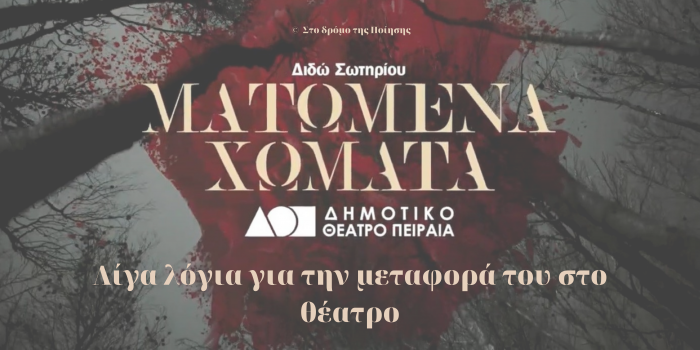 Με αφορμή τα 100 χρόνια από τη Μικρασιατική Καταστροφή και τα 113 χρόνια από τη γέννηση της Διδούς Σωτηρίου, το Δημοτικό Θέατρο Πειραιά παρουσιάζει την παράσταση “Ματωμένα Χώματα” βασισμένη στο ομότιτλο μυθιστόρημα της συγγραφέως. Σε σκηνοθεσία Γιώργου Παλούμπη, με τους Νικήτα Τσακίρογλου, Μιχάλη Σαράντη και Αντίνοο Αλμπάνη μεταφέρεται στο θεατρικό σανίδι η «Βίβλος της σύγχρονης εξόδου του Μικρασιάτικου Ελληνισμού», ένα βιβλίο υπερεθνικό με μηνύματα διαχρονικά και, δυστυχώς, επίκαιρα.