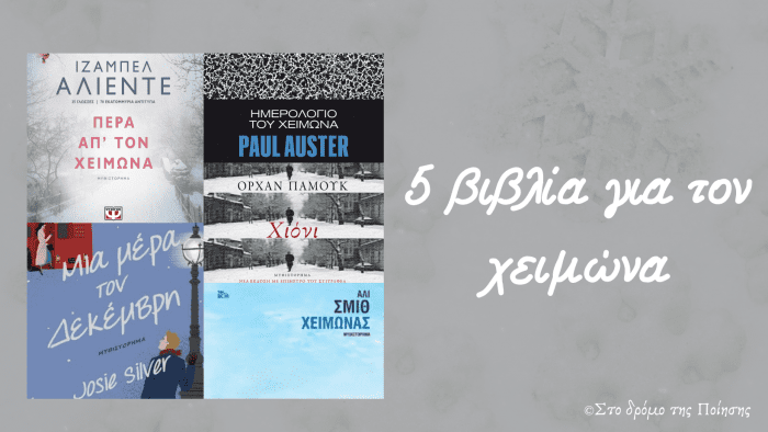 Αυτήν την εβδομάδα καλωσορίσαμε επισήμως τον χειμώνα! Το κρύο, η σπιτική θαλπωρή και η χριστουγεννιάτικη ατμόσφαιρα επιβάλλουν την συνοδεία ενός βιβλίου! Στο σημερινό μας άρθρο θα σας προτείνουμε 5 βιβλία με ξεχωριστές ιστορίες που διαδραματίζονται σε χειμωνιάτικο φόντο! Καλή ανάγνωση!