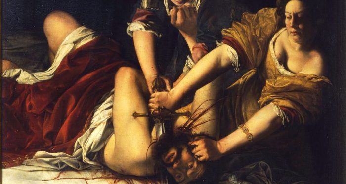 Το διασημότερο δημιούργημά της «Η Ιουδήθ αποκεφαλίζει τον Ολοφέρνη» είναι βουτηγμένο στο αίμα και παράλληλα μια κραυγή διαμαρτυρίας. Υπάρχει όμως και η παραλληλία με