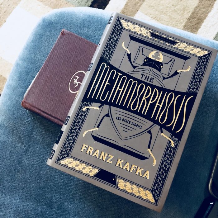 Όταν ο Γκρέγκορ Σάμσα ξύπνησε ένα πρωινό από κακό όνειρο, βρέθηκε στο κρεβάτι του μεταμορφωμένος σε γιγάντια κατσαρίδα. Ήτανε ξαπλωμένος ανάσκελα, πάνω στη σκληρή ράχη του που ‘μοιζε με πανοπλία κι όταν σήκωνε λιγάκι το κεφάλι του μπορούσε να δει την τουρλωτή καφετιά κοιλιά του που ‘τανε χωρισμένη σε σκληρές καμπυλωτές δίπλες και που μόλις συγκρατούσε τα σκεπάσματά του για να ξεγλιστρήσουν τελείως από πάνω του. Τα πολυάριθμα ποδάρια του, που ήταν αξιοθρήνητα λεπτά σε σύγκριση με το υπόλοιπο κορμί του, ταλαντεύονταν ανήμπορα μπροστά στα μάτια του.