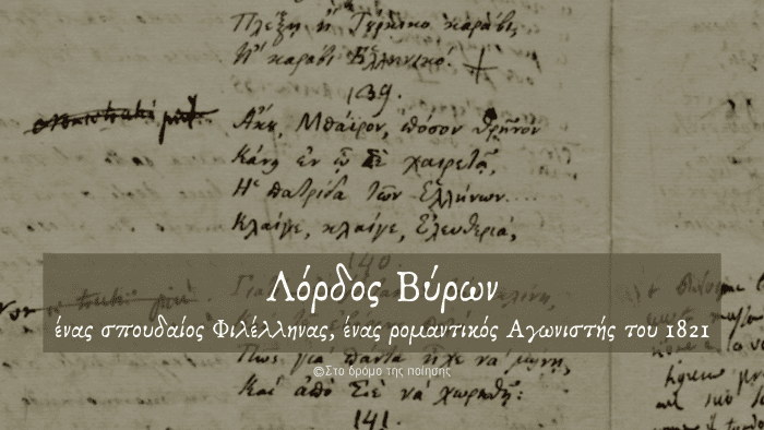 Με αφορμή τον εορτασμό των 200 χρόνων από την Ελληνική Επανάσταση του 1821 σήμερα τιμάμε τη μνήμη του Λόρδου Βύρωνος, ενός από τους σπουδαιότερους εκπροσώπους του ρομαντισμού και της βρετανικής ποίησης, που έχει ταυτιστεί όσο κανείς άλλος φιλέλληνας με την Ελληνική Επανάσταση του 1821.