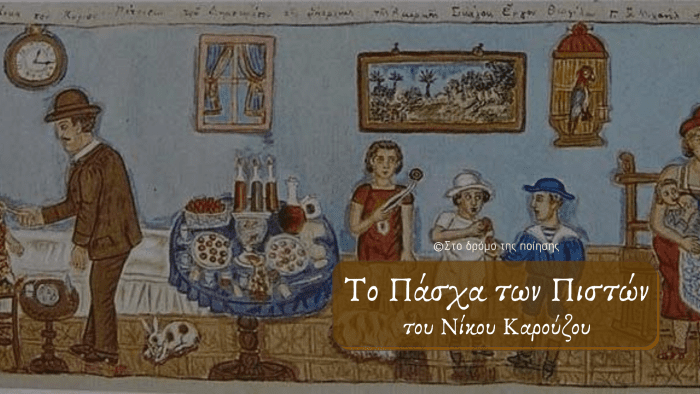 Ντίνος Χριστιανόπουλος, «Μυστικός Δείπνος» (από τη συλλογή “Ξένα γόνατα”, πρώτη έκδοση, 1954), κυκλοφορεί στην συλλογή “ΠΟΙΗΜΑΤΑ” (σελίδα 36), ένατη έκδοση, Θεσσαλονίκη 2020, από τις εκδόσεις Ιανός