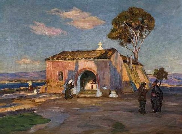 Καί τήν ημέραν αυτήν, τήν παραμονήν τής Κοιμήσεως πάλιν, τόν ευρίσκομεν νά κάθηται εις τό προαύλιον τού ναΐσκου, καί νά καπνίζη μελαγχολικώς τό τσιμπούκι του, μέ τόν ηλέκτρινον μαμέν… αναλογιζόμενος τόσα άλλα καί τούς οχληρούς δανειστάς του, οι οποίοι τού είχαν πάρει εν τώ μεταξύ τό καλύτερον κτήμα· ένα ολόκληρον βουνόν, ελαιώνα, άμπελον, αγρόν μέ οπωροφόρα δένδρα, μέ βρύσιν, μέ ρέμα καί νερόμυλον … καί νά εκχύνη τά παράπονά του εις θρηνώδεις μελωδίας πρός τήν Παναγίαν.