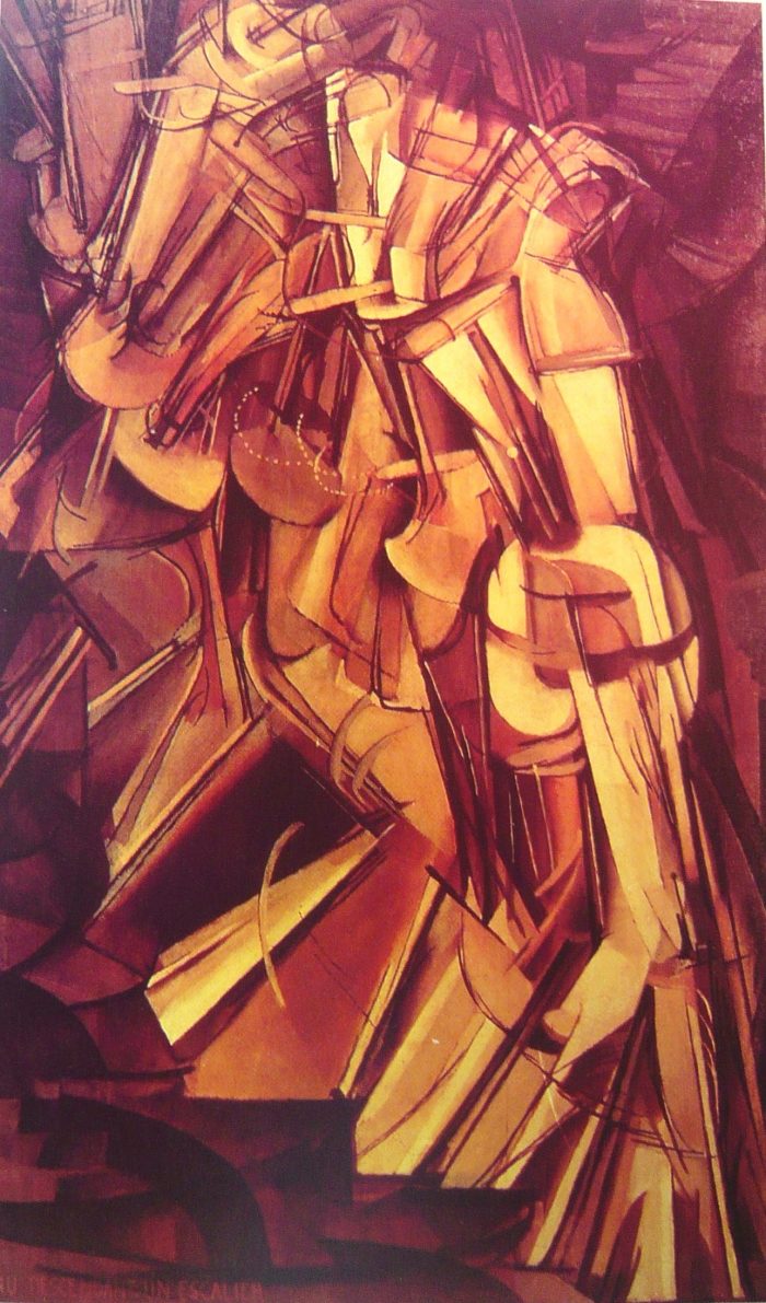 Ο πίνακας που παρουσιάζουμε εδώ ονομάζεται “Γυμνό που κατεβαίνει τη σκάλα, Αρ. 2” και προκάλεσε μεγάλη αίσθηση, όταν εκτέθηκε στη Νέα Υόρκη στην έκθεση του Οπλοστασίου το 1913. Ήταν ο πίνακας που έκανε τον Ντυσάν ξαφνικά διάσημο και ως έργο συνδύαζε τις αρχές του Κυβισμού και του Φουτουρισμού. Ο Ντυσάν πρωτοτύπησε ως προς το ότι προσπάθησε να «αιχμαλωτίσει» την κίνηση πάνω στον καμβά. Είναι εμφανείς οι επιδράσεις που δέχτηκε από τον φουτουρισμό, τον κινηματογράφο, τις χρονοφωτογραφίες και τις φωτογραφικές σπουδές του ανθρώπινου σώματος σε κίνηση.