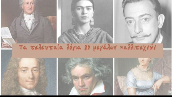 Στη διάρκεια της ζωής τους υπήρξαν προσωπικότητες που επηρέασαν με τον ένα ή τον άλλον τρόπο τον καλλιτεχνικό κόσμο, ακόμη και τον τρόπο σκέψης της ανθρωπότητας. Φιλόσοφοι, ζωγράφοι, τραγουδοποιοί, σκηνοθέτες, συνθέτες, συγγραφείς… Από την αρχαιότητα μέχρι σήμερα, πριν αφήσουν την τελευταία τους πνοή ήθελαν κάτι να πουν. Μπορεί να ήταν ένα απόφθεγμα που περιέκλειε όλη τους τη ζωή, ένα παράπονο, μια τελευταία επιθυμία ή ένα ξάφνιασμα της στιγμής…. Στο ακόλουθο αφιέρωμα θα διαβάσετε 20 τελευταία λόγια 20 μεγάλων καλλιτεχνών…