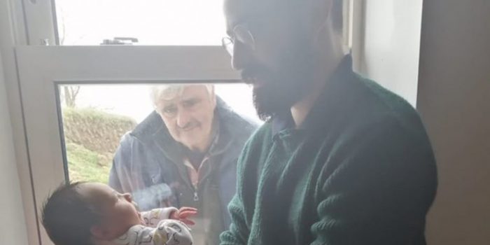 Τo γλυκό αυτό στιγμιότυπο απαθανάτισε η μητέρα του αγοριού, η οποία επίσης λέγεται Έμμα. Η συνονόματη θεία του μωρού, που ανέβασε τη φωτογραφία, έγραψε: «Τρεις γενιές κοινωνικής αποστασιοποίησης, καθώς ο μπαμπάς μου συναντά τον εγγονό του για πρώτη φορά».